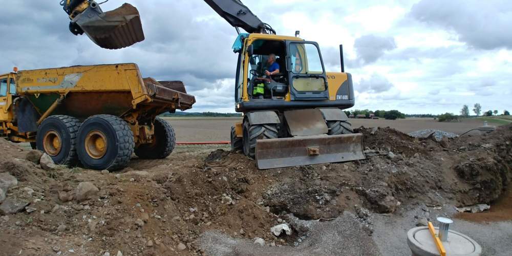 Med vår maskinpark kan vi utföra alla typer av transport- och entreprenadtjänster som snöröjning, avloppsanläggning, tomtplanering och husgrunder.